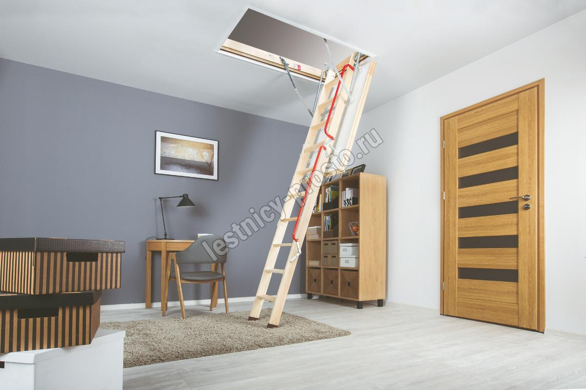 Складная чердачная лестница LWL имеет повышенные теплоизоляционные параметры и высокий класс герметичности. Утеплённая крышка люка белого цвета. Лестница оборудована специальным механизмом LXM-3 и крючком на нижней ступени марша для стержня, которые в комплексе обеспечивают лёгкость и плавность открывания и закрывания лестницы. Снабжена дополнительным поручнем для безопасного подъёма.