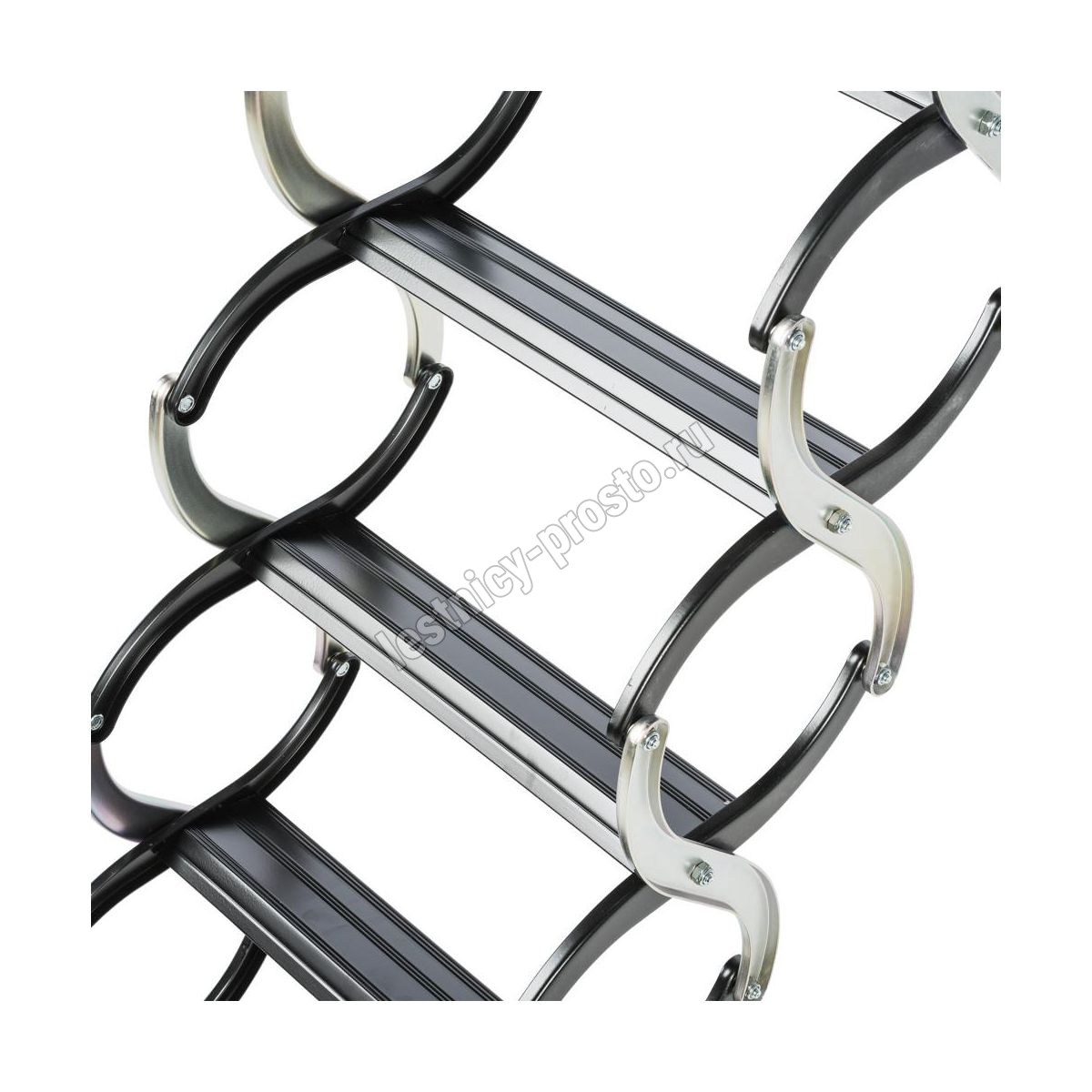 Ножничная лестница из анодированной стали, на ступенях антискользящие насечки.