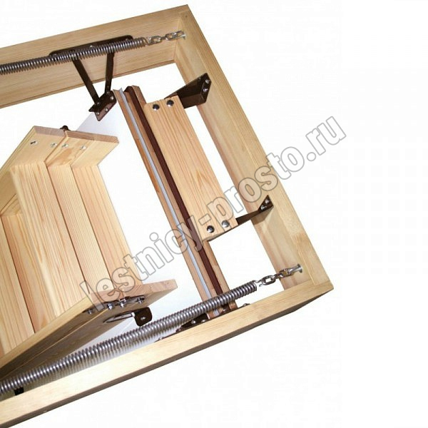 Максимально утеплённая чердачная лестница из массива сосны. Складная, трёхсекционная. Лестница идеально подходит для организации прохода на холодный чердак.