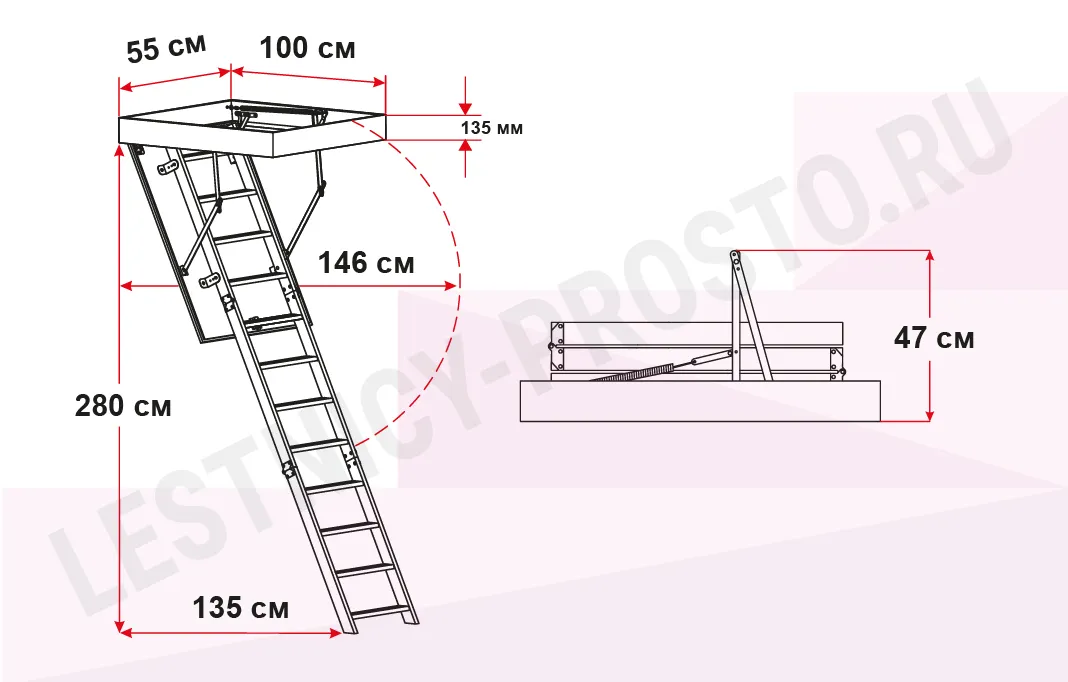 Чердачная лестница с люком OMAN COMPACT TERMO 55х100 см, h-280 см