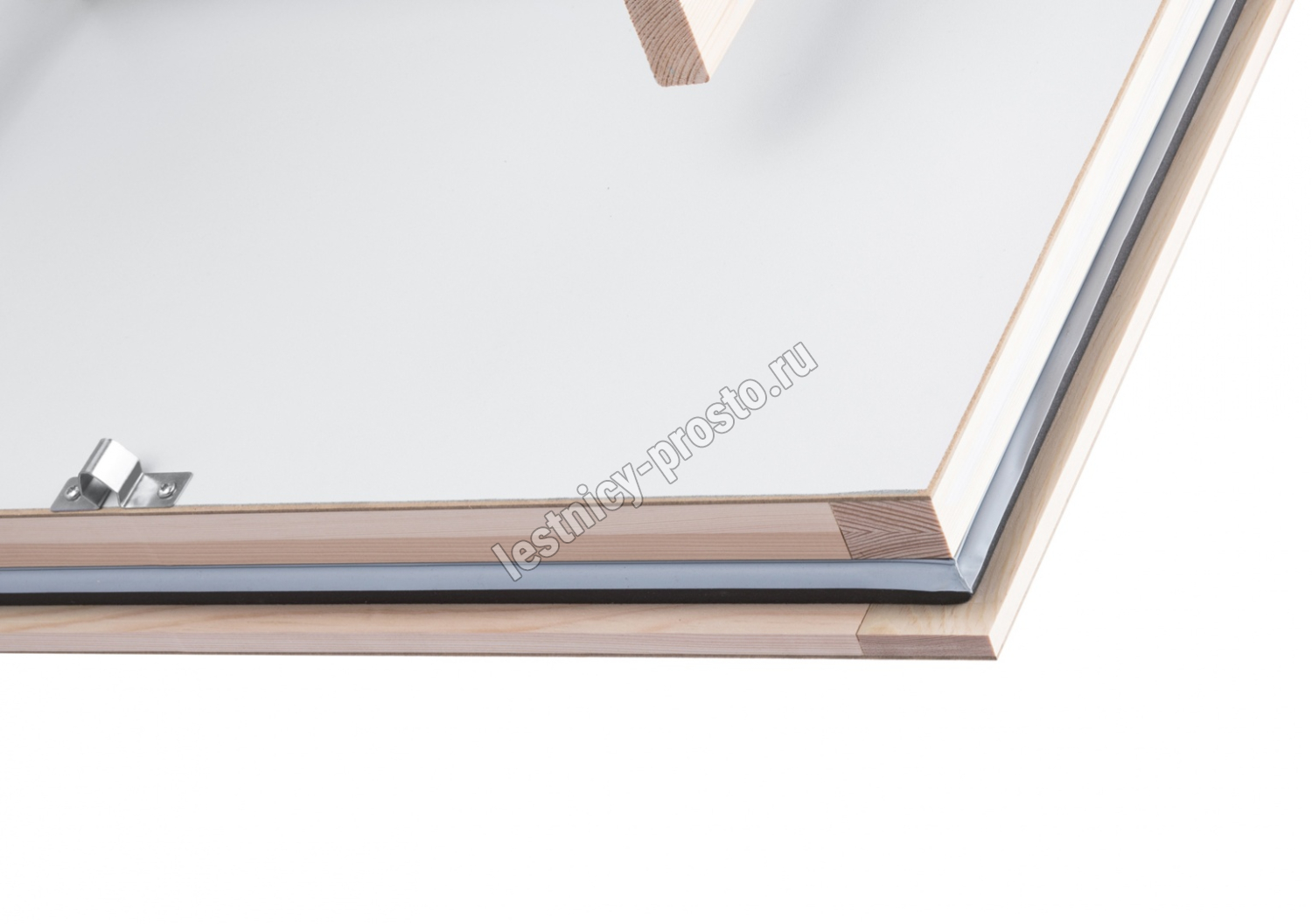 Лестница EI45 POLAR отличается тройным уплотнением, включая одинарное противопожарное уплотнение и люк толщиной 86 мм. Крышка люка утеплена пенопластом, облицована с двух сторон ДСП белого цвета.