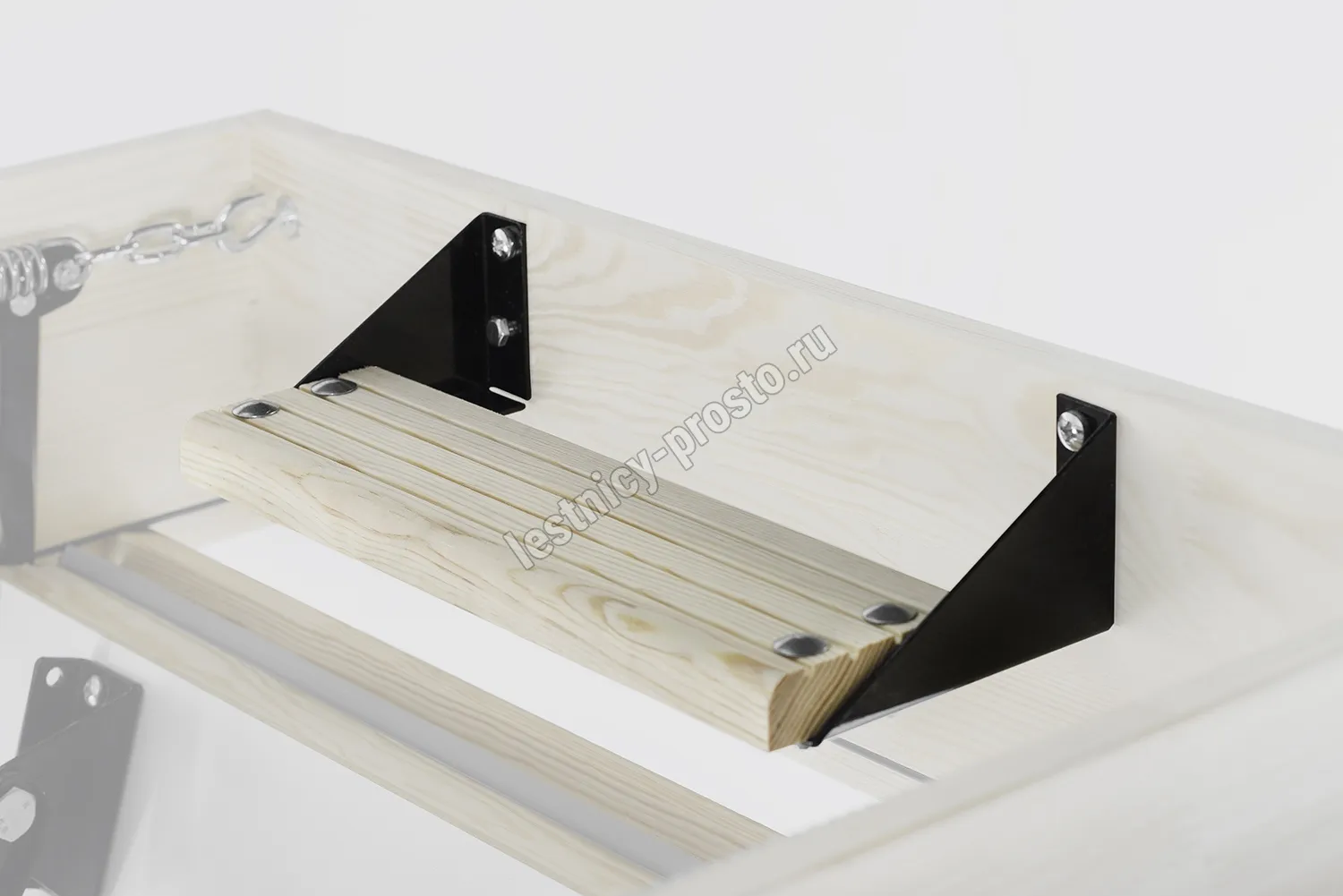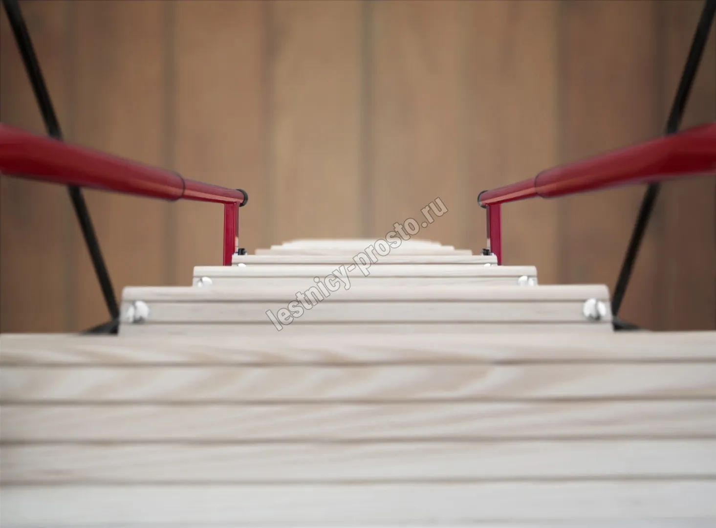 Ступени лестницы имеют антискользящие насечки и закреплены в столярное соединение «ласточкин хвост»