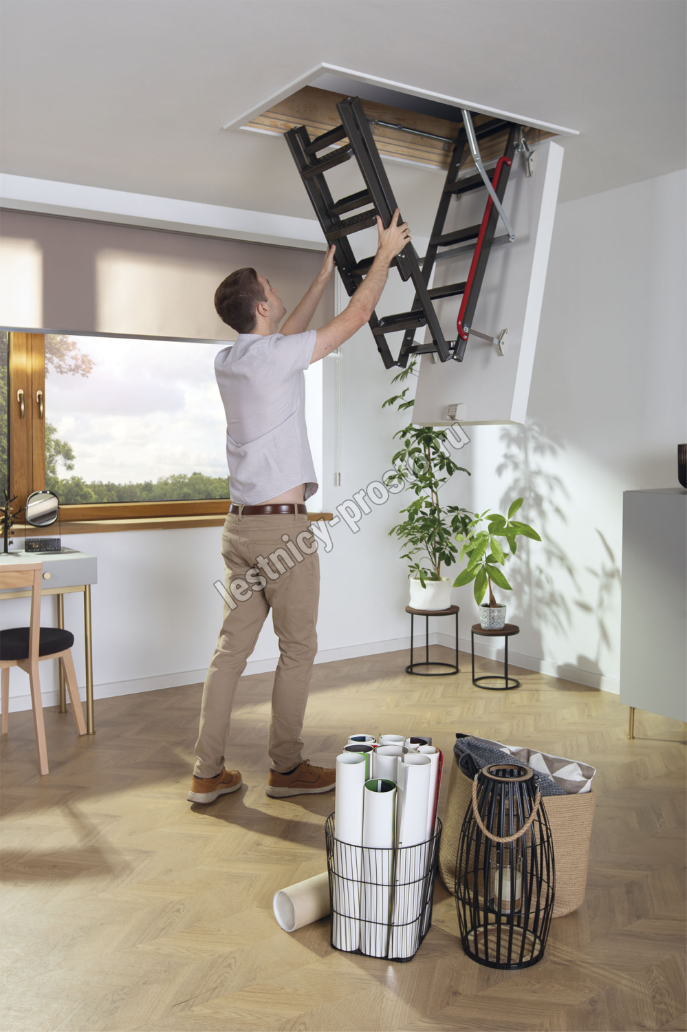 Супертеплоизоляционная металлическая чердачная лестница FAKRO LMT 70×130 см, h-280 см