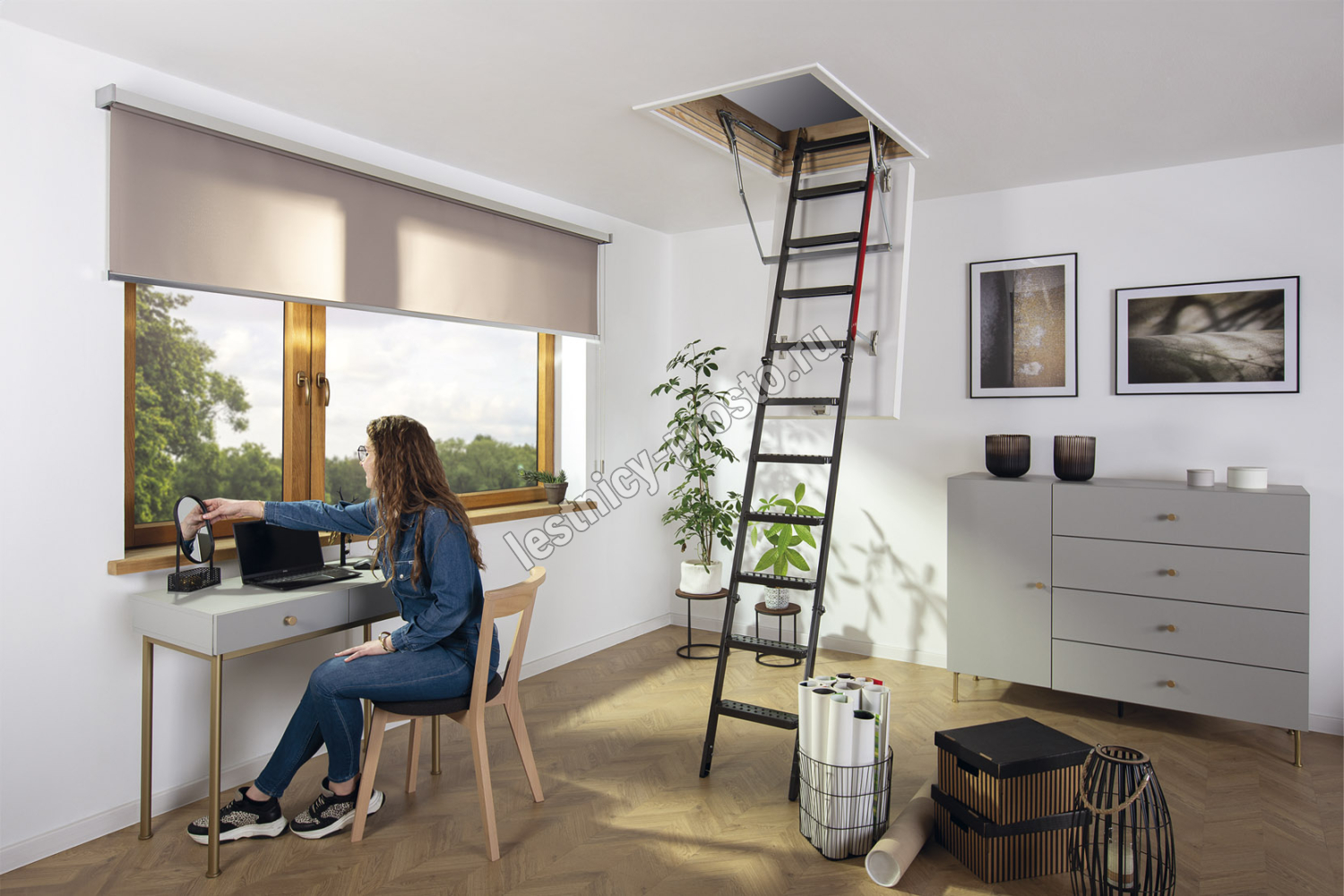 Супертеплоизоляционная металлическая чердачная лестница FAKRO LMT 70×140 см, h-280 см