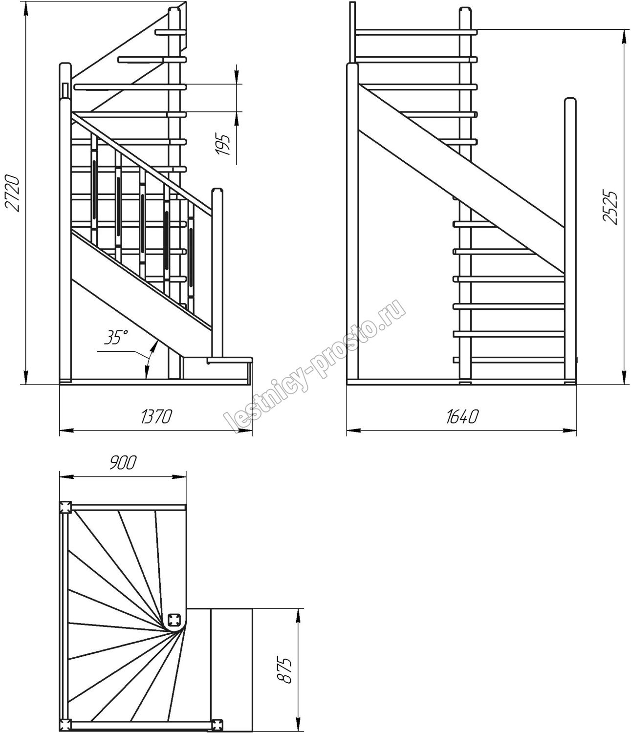 Удобная поворотная лестница на второй этаж. Дополнительные ограждения по первому маршу обеспечивают безопасность при подъеме и спуске, кроме того, небольшой угол подъема открывает всю площадь ступеней. Монтаж осуществляется силами двух человек на объекте по указаниям, приведенным в паспорте на лестницу.