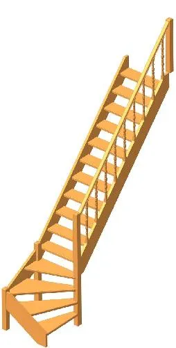 Деревянная межэтажная лестница ЛЕС-07 2470-2675 проем 2360-830, Бук