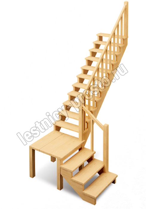 Базовый комплект включает в себя деревянные элементы лестницы и ограждения без какого-либо покрытия. Лестница поставляется в разобранном виде, упакованная в ящик. Монтаж производится силами двух человек, в соответствии с указаниями, приведёнными в паспорте лестницы.