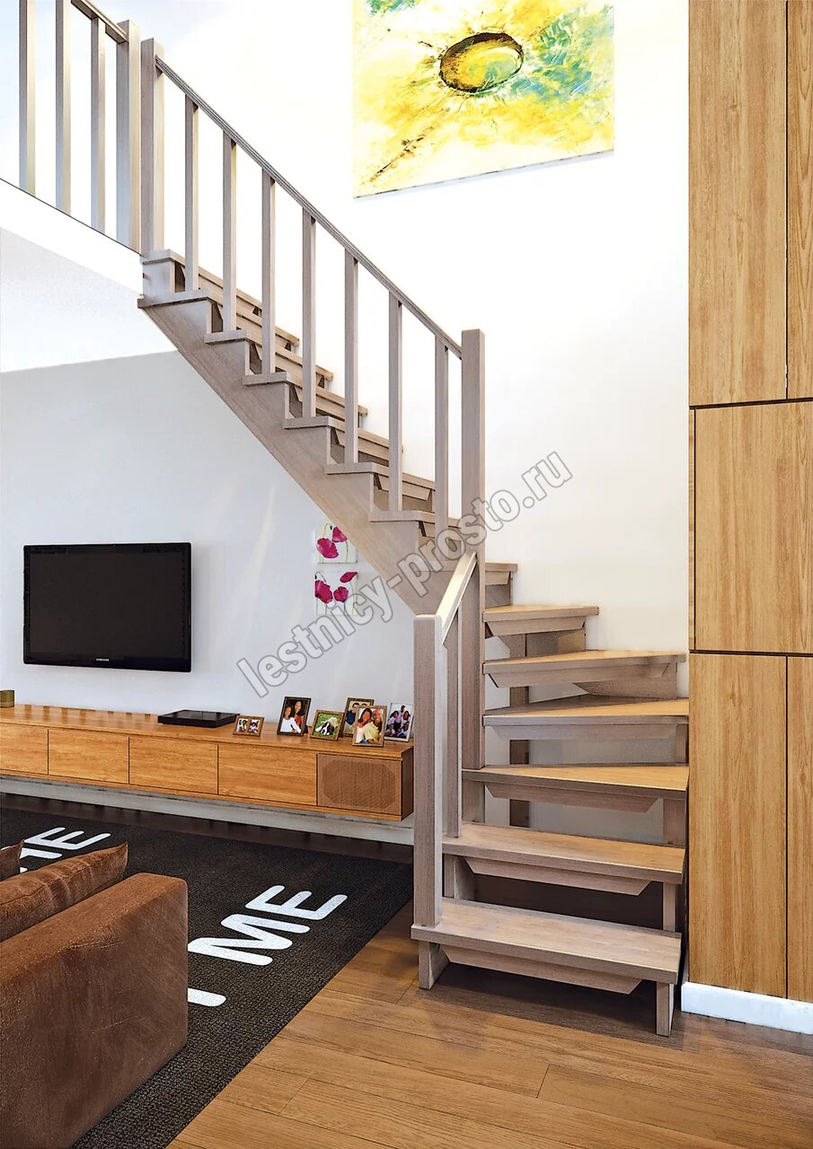 Деревянная межэтажная лестница ЛЕС-09 3105 проем 2580-900, Лиственница