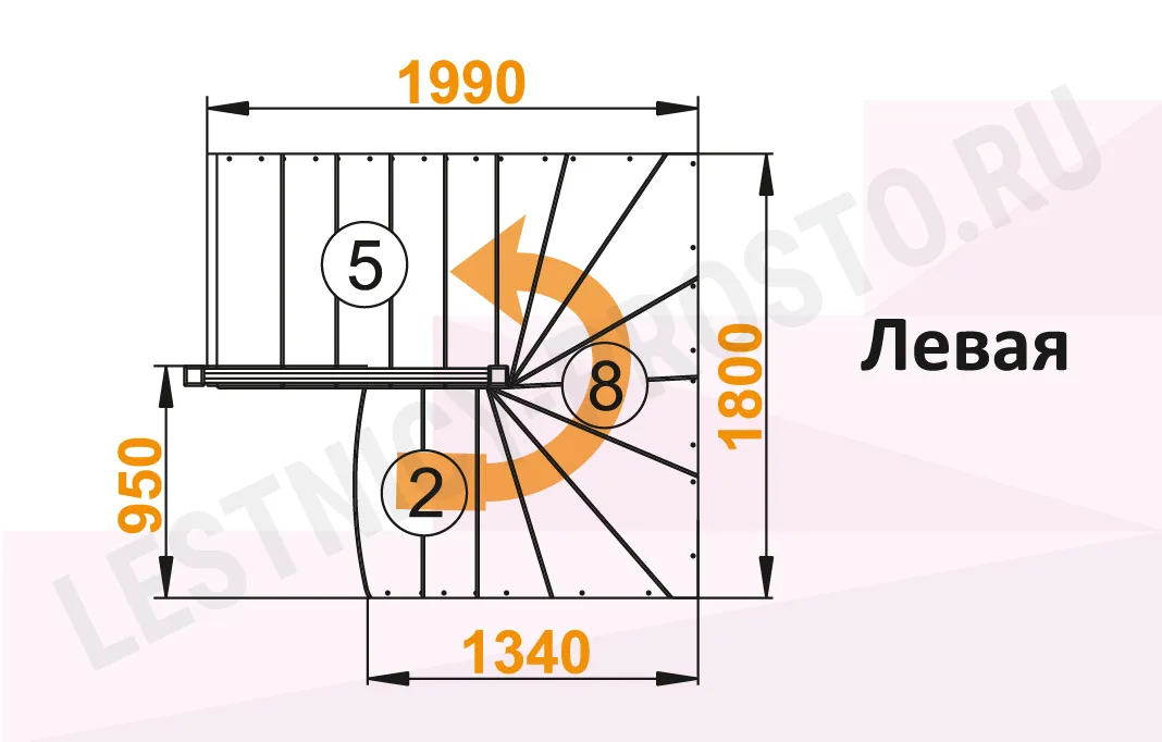 Лестница К-003М/4 с поворотом налево