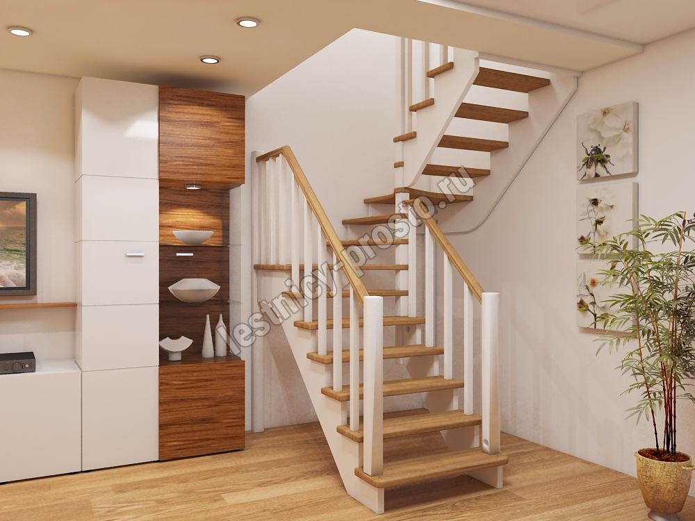 Ступени и поручень лестницы изготовлены из бука, остальные элементы из сосны.