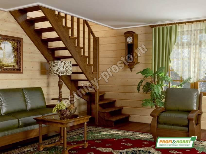 Ступени и поручень лестницы изготовлены из дуба, остальные элементы из сосны.