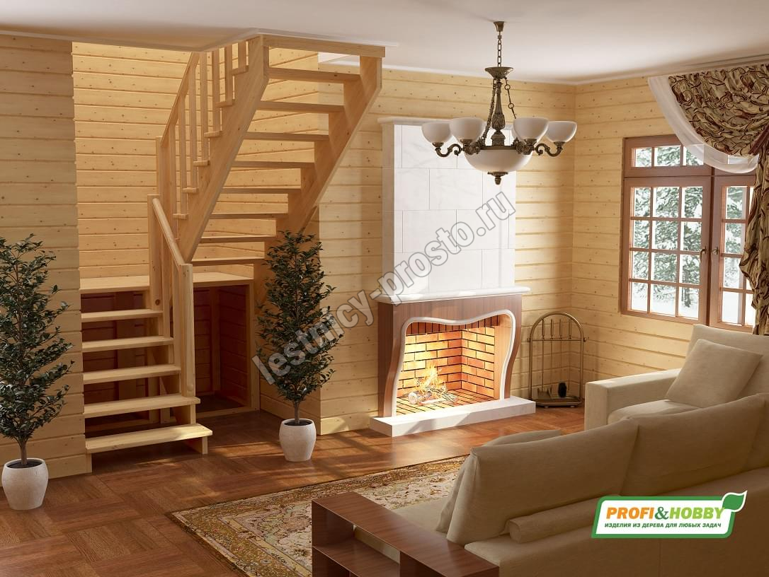 Ступени и поручень лестницы изготовлены из дуба, остальные элементы из сосны.