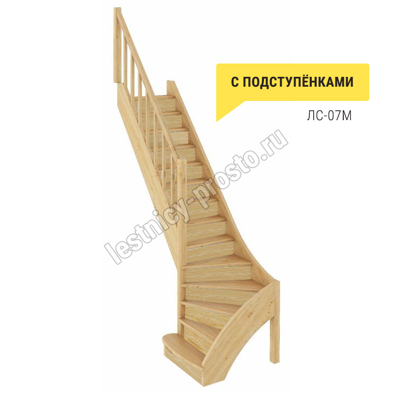 Базовый комплект включает в себя деревянные элементы лестницы с подступенками и ограждения без какого-либо покрытия.
