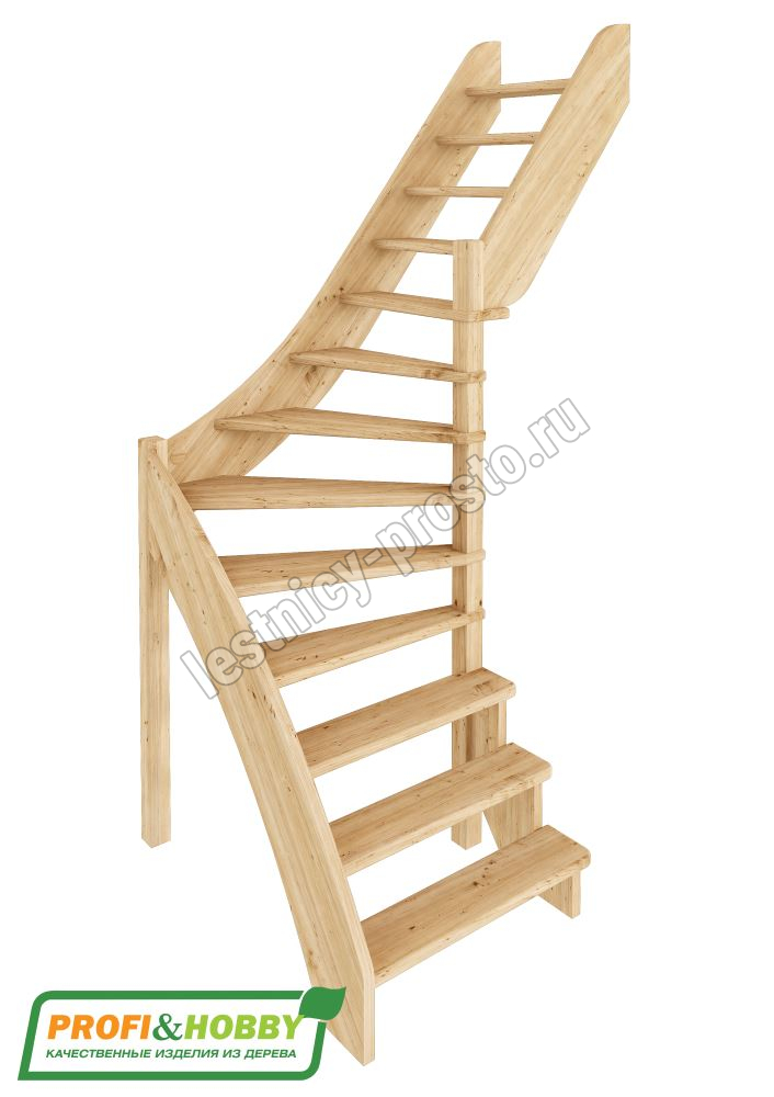 Базовый комплект включает в себя деревянные элементы лестницы без какого-либо покрытия.