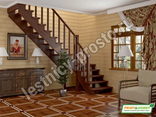 Базовый комплект включает в себя деревянные элементы лестницы и ограждения без какого-либо покрытия.