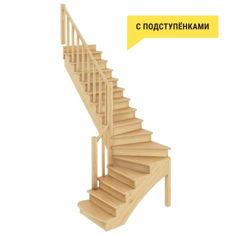 Лестница К-020у из сосны с подступёнками