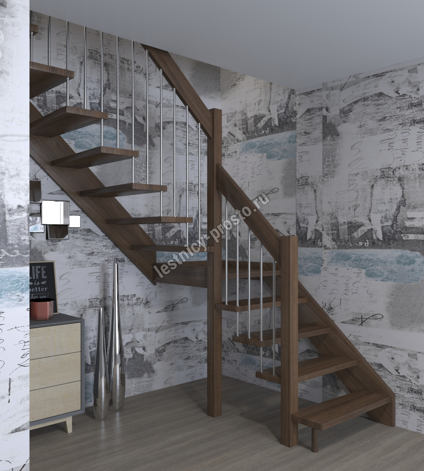 Надёжная современная лестница выполнена по немецкой технологии. Стоимость указана для лестницы с ограждением (с одной стороны); Поставляется в разобранном виде, в комплекте необходимый крепёж; Лестницу можно собрать самостоятельно; Так же, вы можете заказать услугу монтажа нашими специалистами; 4 вида породы дерева для изготовления лестницы: сосна, бук, ясень, дуб; возможна комбинированная лестница: из сосны (ступени бук, ясень, дуб); Деревянные элементы без какого-либо покрытия, отшлифованы, готовы к покраске. За дополнительную плату, вы можете изменить любые параметры, а именно: увеличить глубину ступени; увеличить ширину марша до 900 мм. и выше; заказать подступенки к лестнице; заказать отделку перекрытия (между 1-м и 2-м этажами); изготовить дополнительный промежуточный марш; заказать ограждение 2-го этажа; покраска в любой цвет или несколько цветов или покрытие защитными средствами; дополнение балясины из нержавеющей стали деревянными элементами; покраска балясин из нержавеющей стали порошковой краской в цвет RAL.