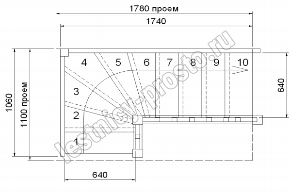 Форма лестницы Г-образная