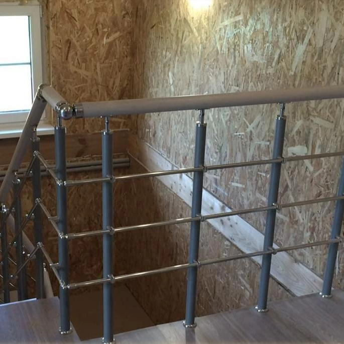 В комплекте круглый буковый поручень диаметром 50 мм. без какого либо покрытия, стойки из нержавеющей стали, окрашенные в цвет каркаса диаметром 38 мм, комплект спиц (3 ряда) из нержавеющей стали d12 мм.<br>