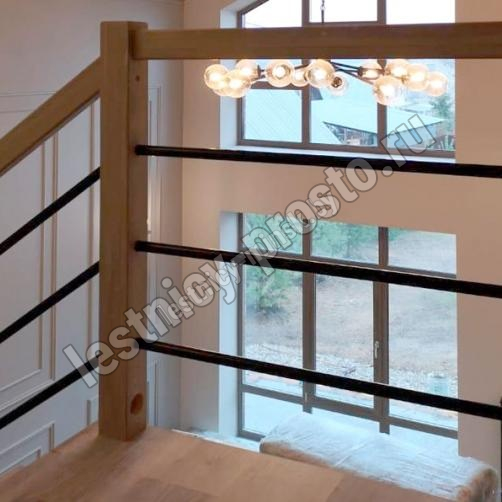 В комплекте: столбы и профильный поручень из бука без какого-либо покрытия, комплект из 3 стальных ригелей (окрашены в цвет каркаса или хром по желанию) диаметром 12 мм. Вы можете заказать у нас предварительную профессиональную покраску деревянных элементов в любой цвет.