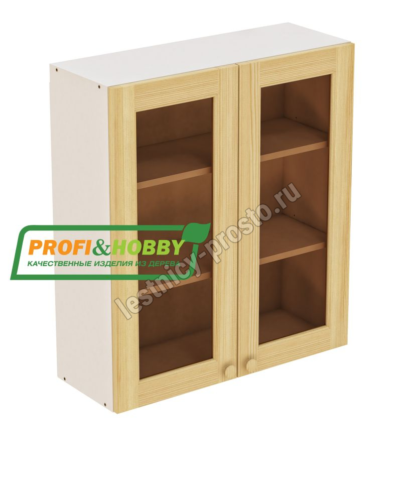 Шкаф навесной 2 двери 800х340х960 + фасад сосна под стекло бесцветный акриловый лак