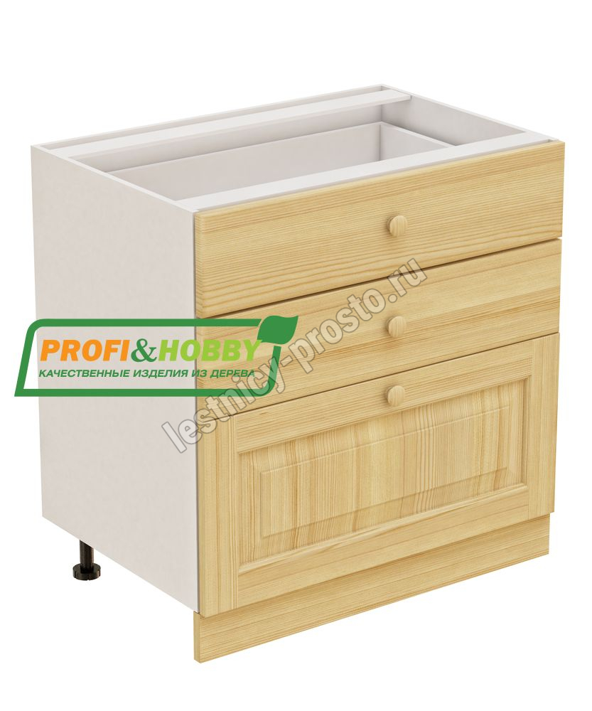 Тумба 3 ящика 800х530х720 + фасад сосна бесцветный акриловый лак