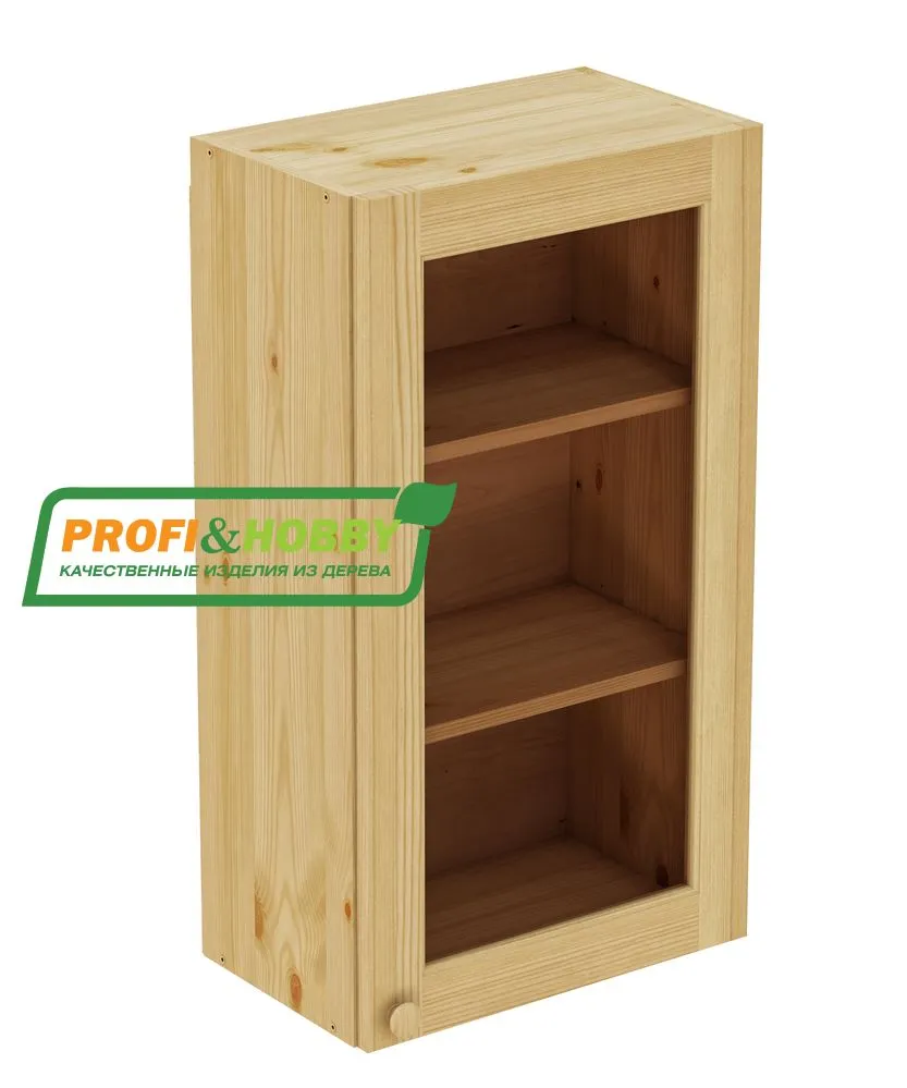 Шкаф навесной 500 х 300 х 900 под стекло, сосна, без покраски