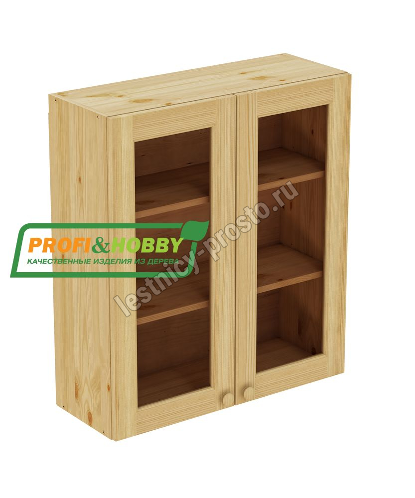 Шкаф навесной 800 х 300 х 900 под стекло, сосна, бесцветный акриловый лак