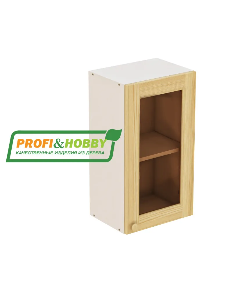 Шкаф навесной изготовлен из 100% массива дерева, без шпона и без МДФ/ДСП.