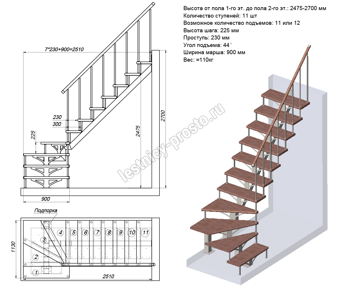 - таким образом вы получаете возможность увеличить общую высоту подъёма лестницы до необходимой.