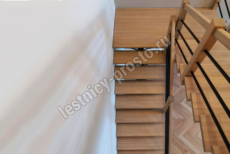 Ступени лестницы изготовлены из дерева категории А/В паркетной склейки без какого-либо покрытия.