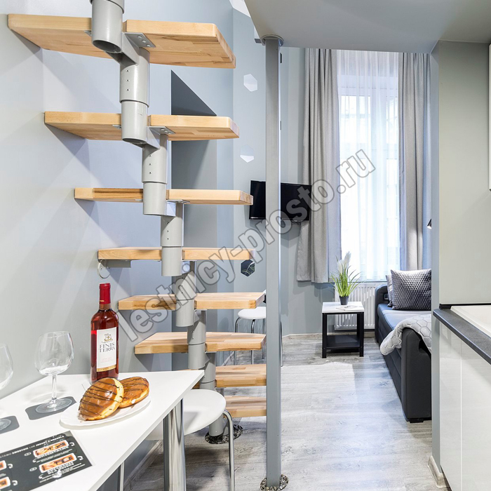 Модульная лестница Mini Plus серебро, светлый бук