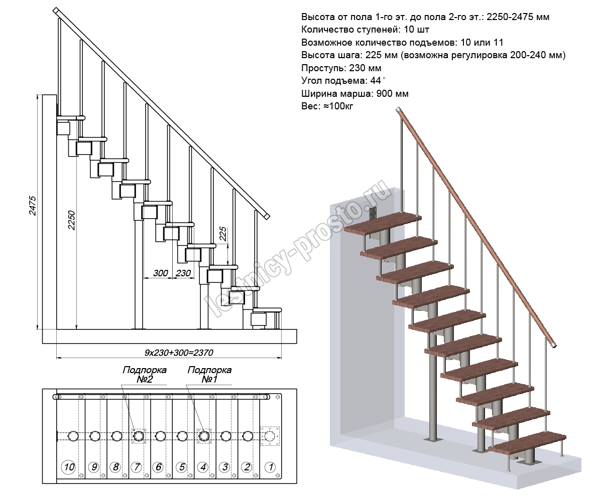 Модульная лестница PROSTO Module прямая/ h202.5 см
