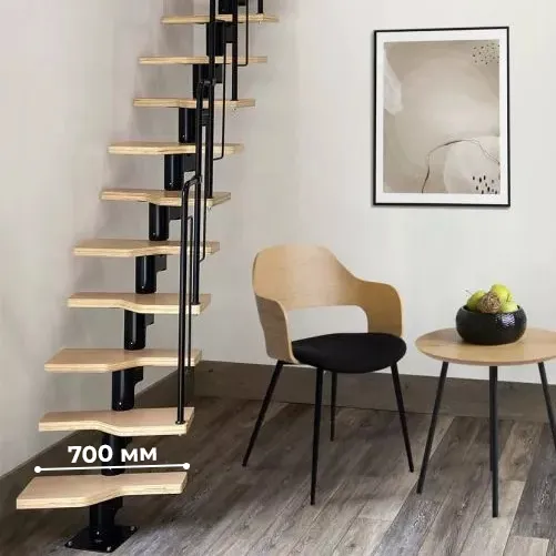 Лестница Prosto Urban Black гусиный шаг 700 мм, h216-312 см (12 ступеней), бук