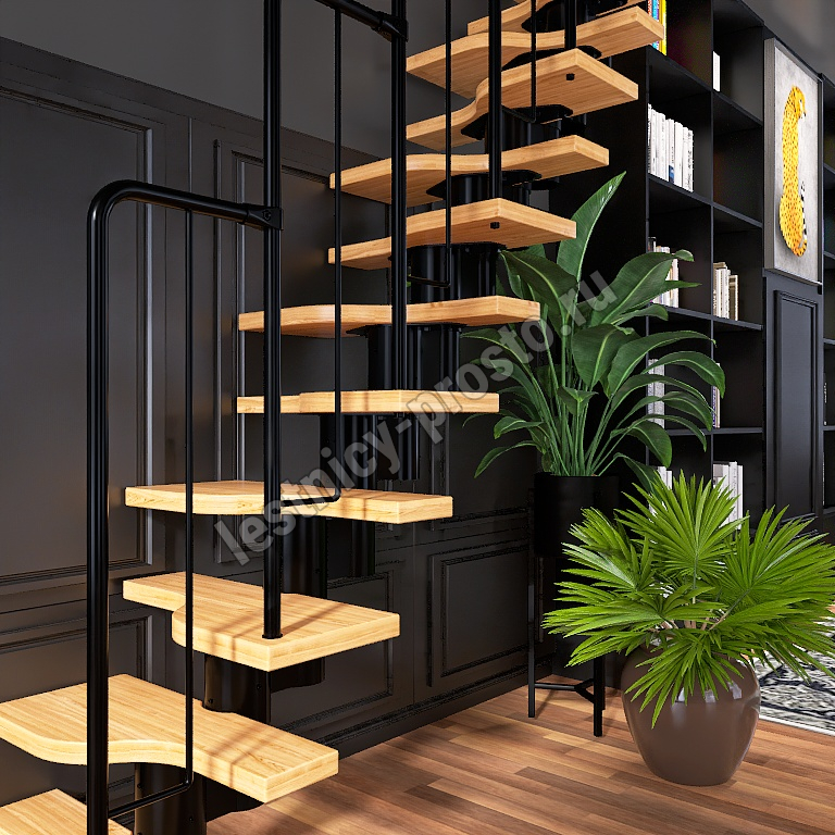 | Лестница Prosto Urban Black гусиный шаг 700 мм, h198-288 см (11 ступеней), бук |