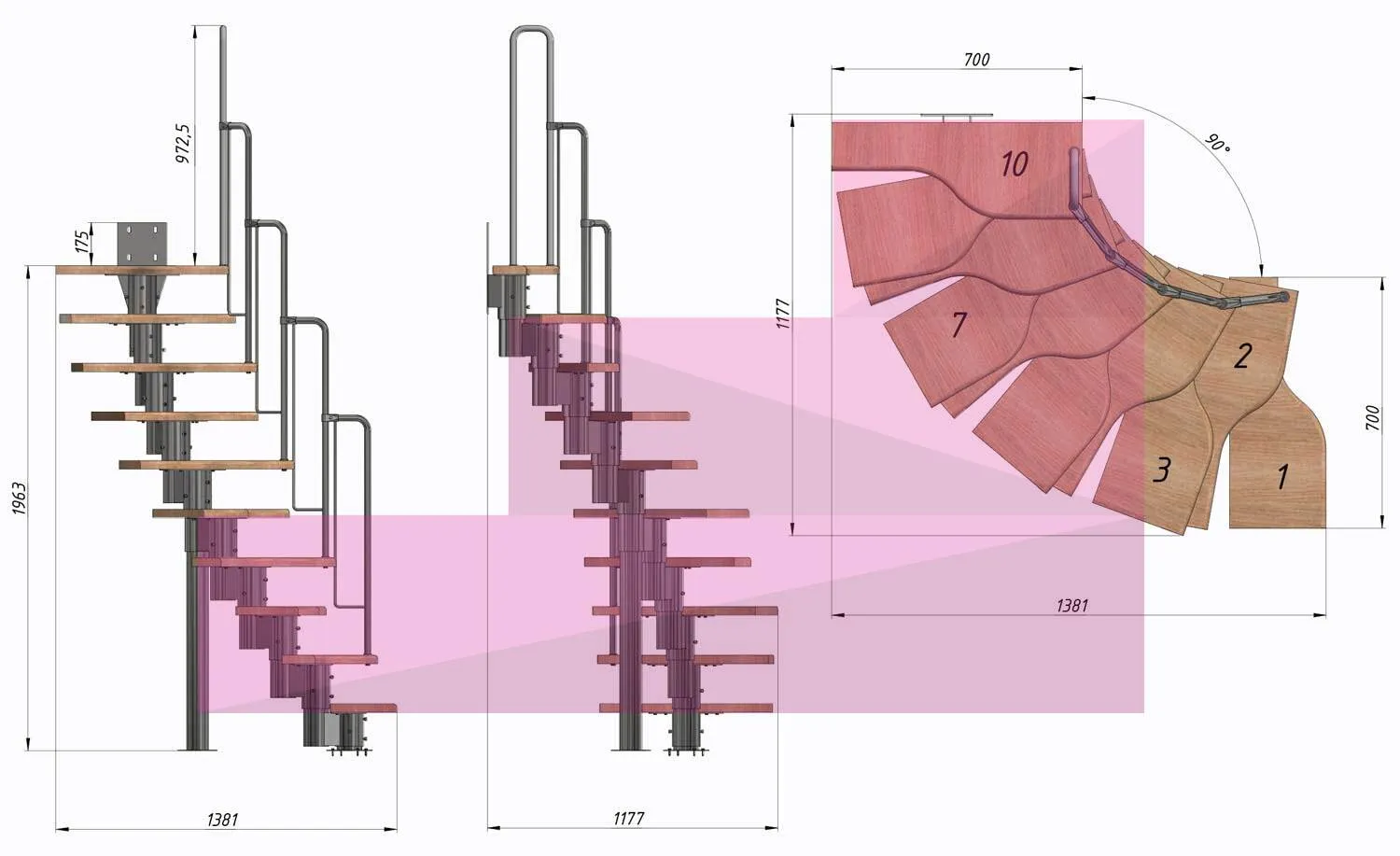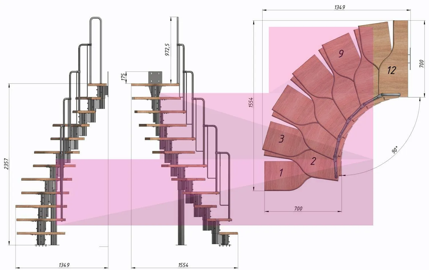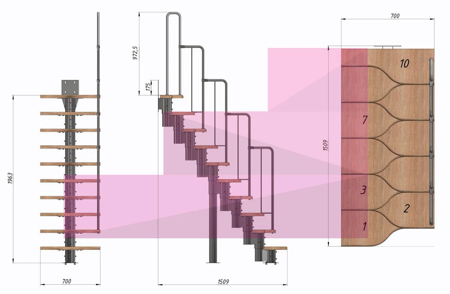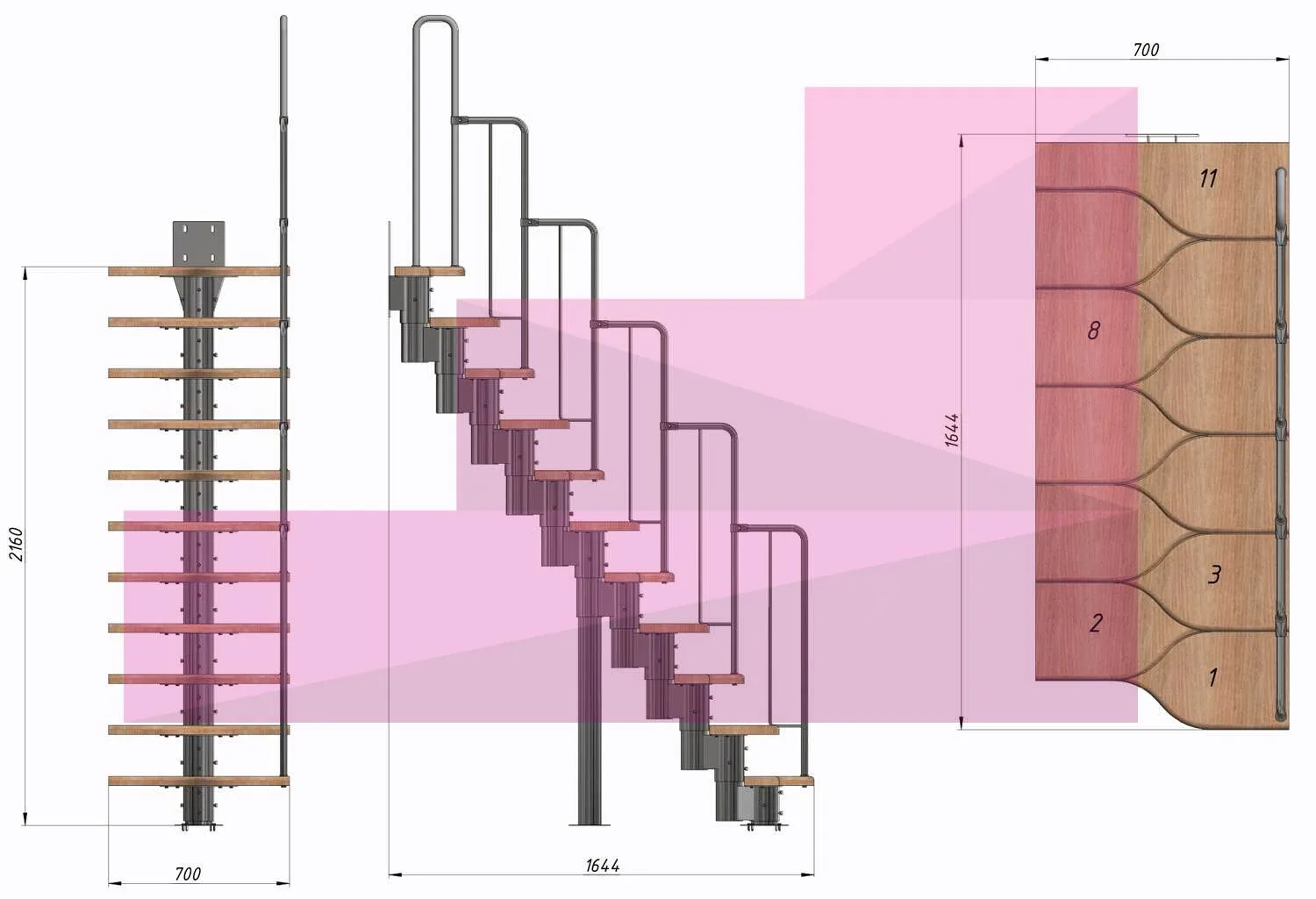 - Регулируемый по высоте в пределах 180-240 мм модуль. Большой диаметр и толщина металла деталей обеспечивают жесткость и прочность конструкции. Регулировка каждого модуля по высоте позволяет легко приспособить лестницу под ваше помещение.