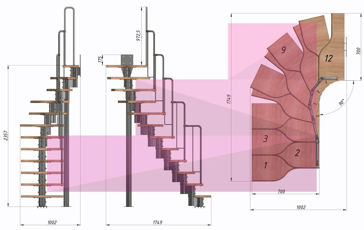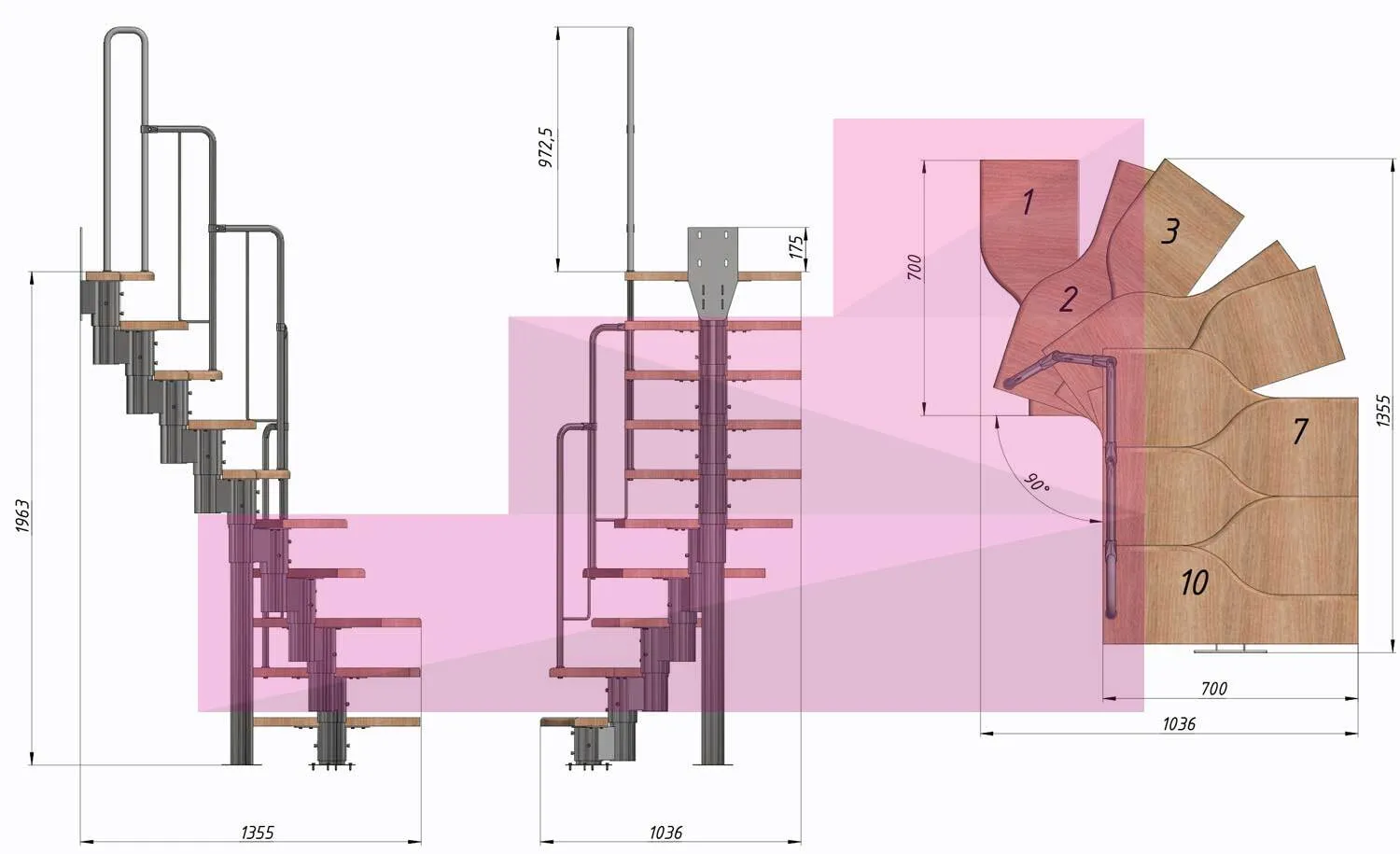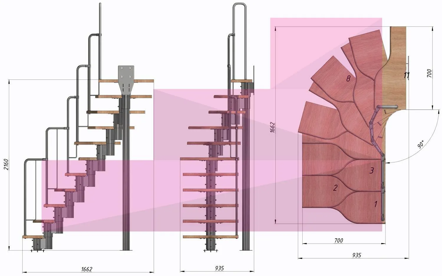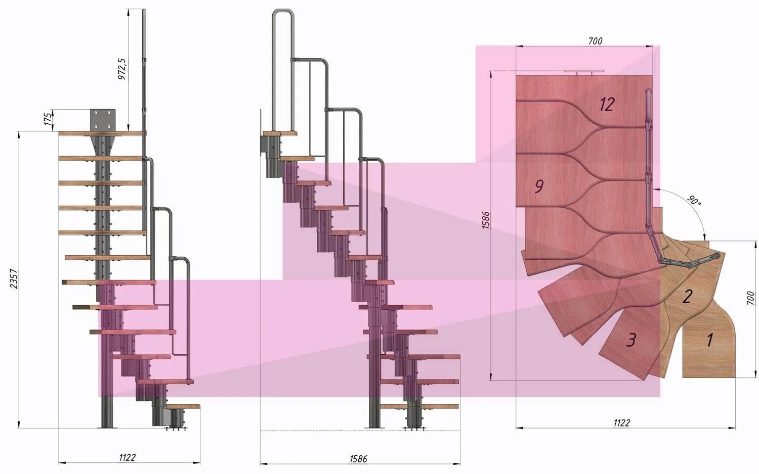 - Регулируемый по высоте в пределах 180-240 мм модуль. Большой диаметр и толщина металла деталей обеспечивают жесткость и прочность конструкции. Регулировка каждого модуля по высоте позволяет легко приспособить лестницу под ваше помещение.