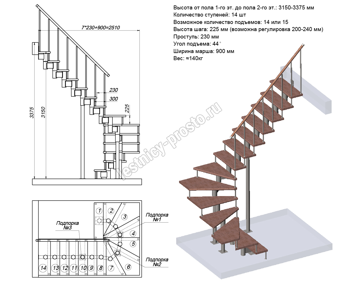 Количество ступеней до поворота - может быть любым , по запросу мы рассчитаем стоимость и сделаем чертеж-схему в соответствии с вашими параметрами. Так же, поворот лестницы может быть реализован через площадку. Звоните и пишите нам по всем возникающим вопросам: мы профессионалы в области лестниц и поможем правильно сориентироваться, не совершив ошибок!