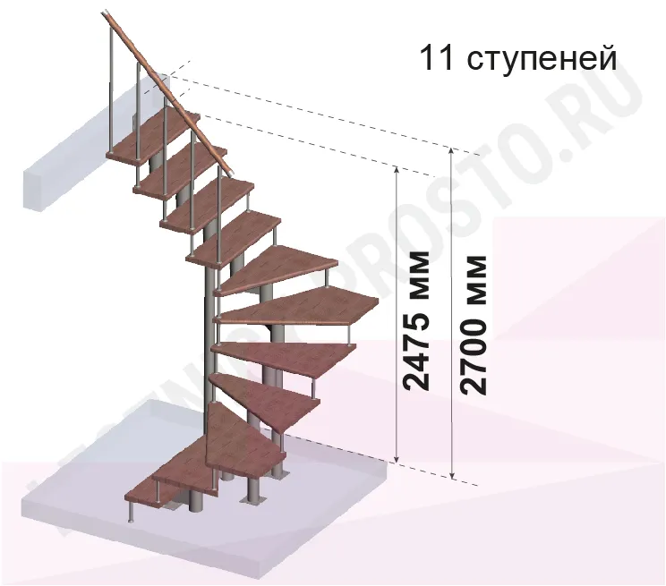 | Модульная лестница PROSTO MODULE п-образная, h270, бук |