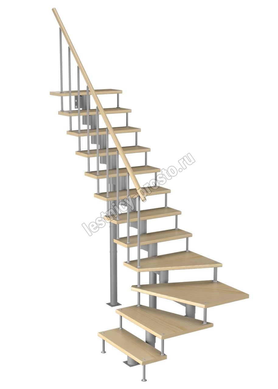 Модульная лестница Фаворит 225 2700-2820, Серый, Лиственница, Нержавеющая сталь
