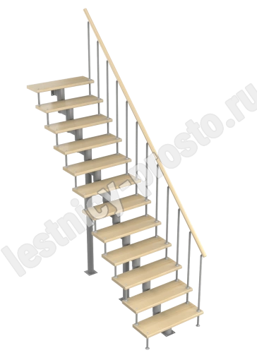 Модульная лестница Стандарт 2700-2820, Серый, Сосна, Нержавеющая сталь