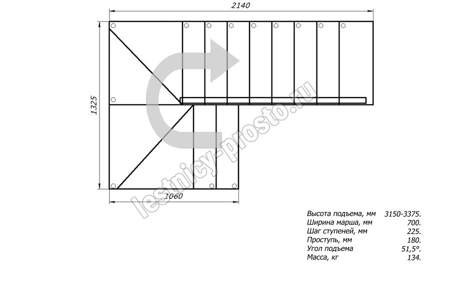 Модульная малогабаритная лестница Эксклюзив 3150-3375, Черный, Лиственница, Нержавеющая сталь