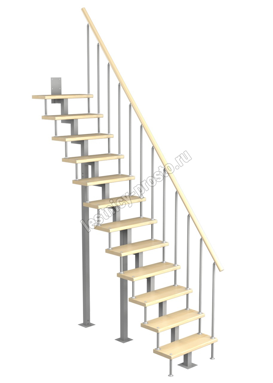 Модульная малогабаритная лестница Линия 2700-2925, Серый, Бук, Нержавеющая сталь