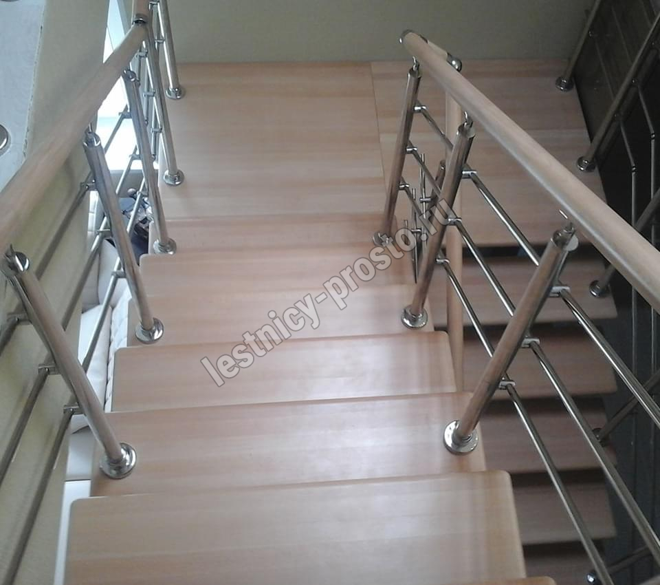 Ступени этого варианта лестницы изготовлены из сращенной сосны категории АВ, без какого-либо покрытия.