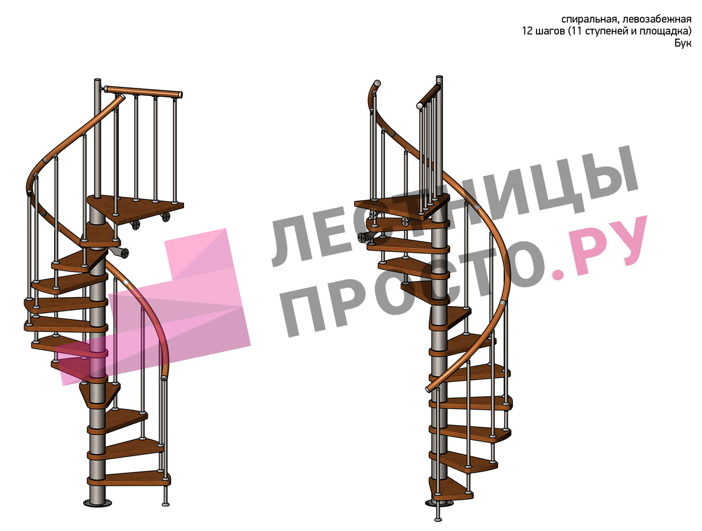 Винтовая лестница Prosto Spiral Black D120см, h260.5-304.6 см, бук