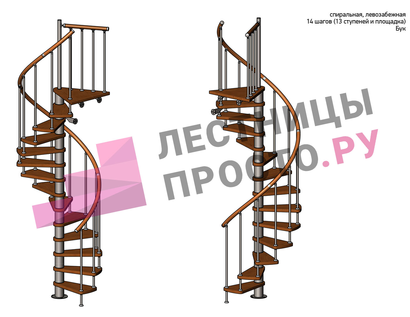 Левая, d=120см, 13 ступеней + площадка