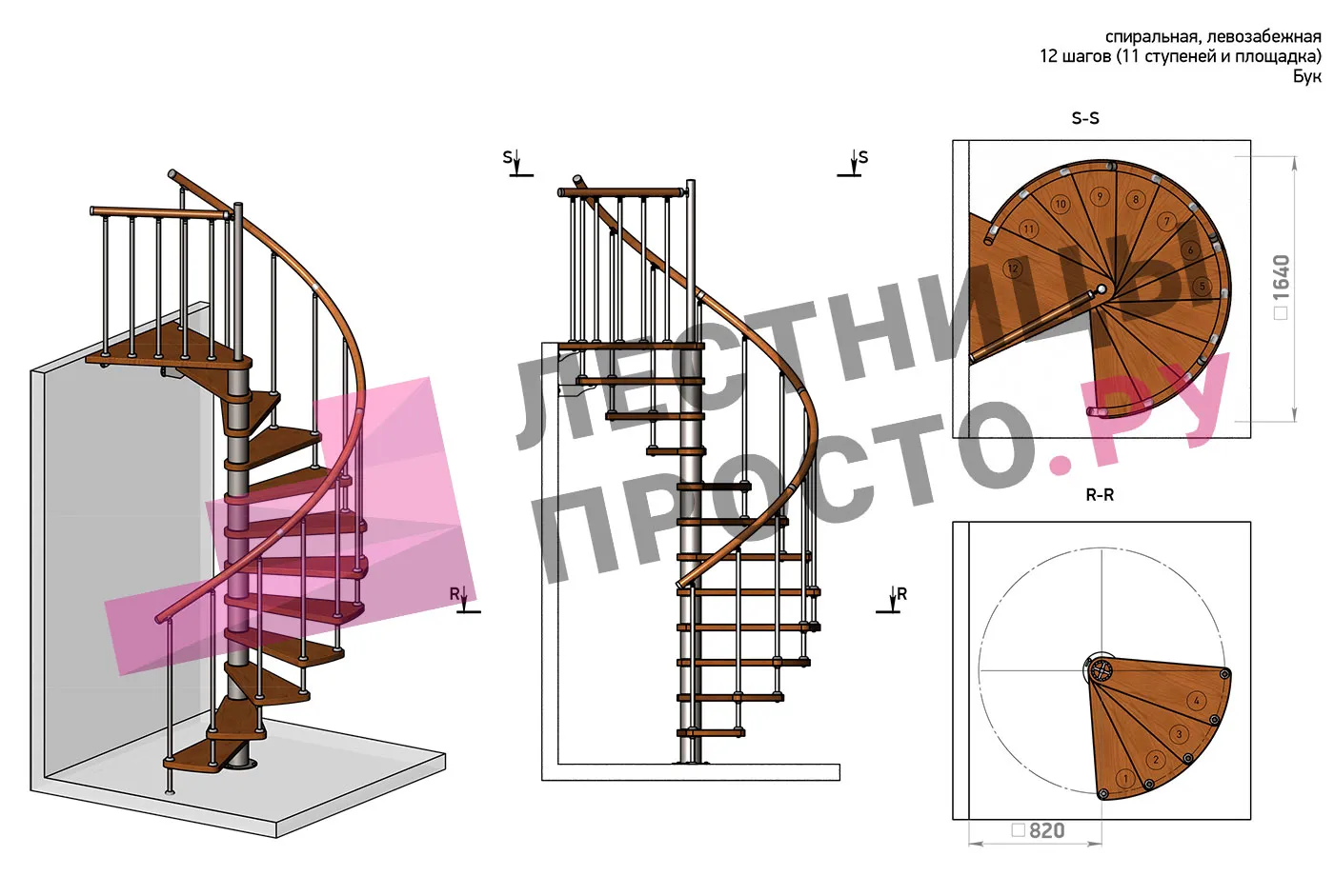 Решение о направлении поворота принимается при сборке лестницы - универсальная конструкция позволяет собрать правозабежную и левозабежную лестницы. Высота ступеней регулируется с шагом 3 мм. в пределах 217-247 мм., благодаря чему, лестница прекрасно подгоняется под необходимую высоту.