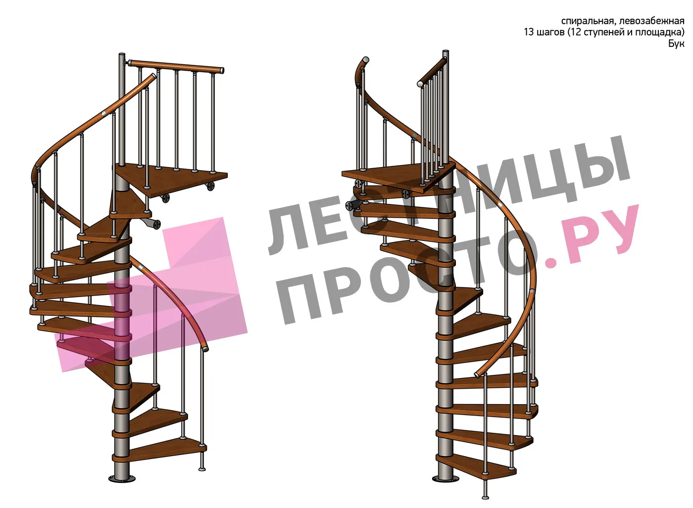 Решение о направлении поворота принимается при сборке лестницы - универсальная конструкция позволяет собрать правозабежную и левозабежную лестницы. Ширина ступени между центральной колонной и поручнем ≈ 680 мм