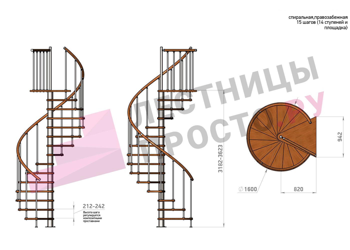 | Винтовая лестница Prosto Spiral Black D160см, h275.7-313.9 см |