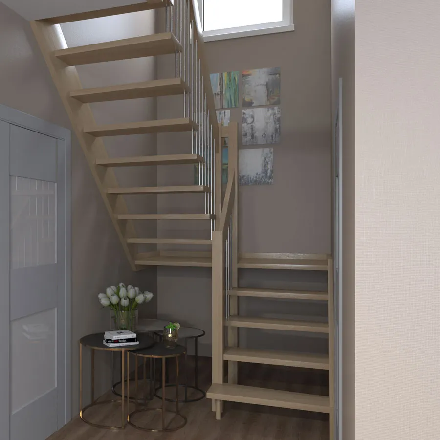 Решение о направлении поворота принимается при сборке - универсальная конструкция позволяет собрать правозабежную и левозабежную лестницы. Высота ступеней регулируется с шагом 3 мм. в пределах 217-247 мм., благодаря чему, лестница прекрасно подгоняется под необходимую высоту.